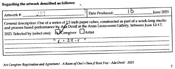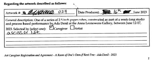 Created during the summer following a week-long exhibition of A Room of One’s Own // Rent Free at the Anna Leonowens Gallery in Halifax, NS.