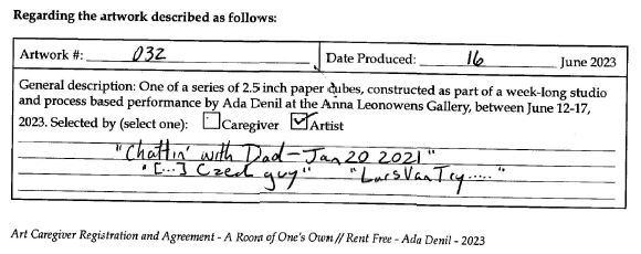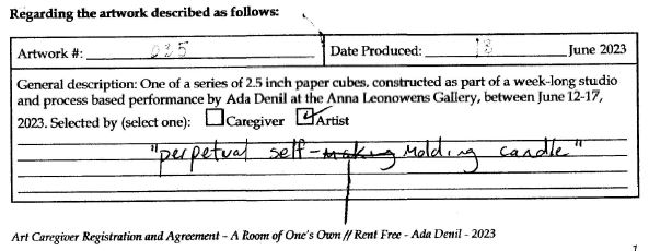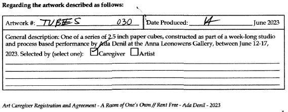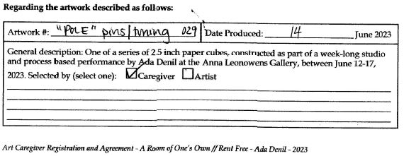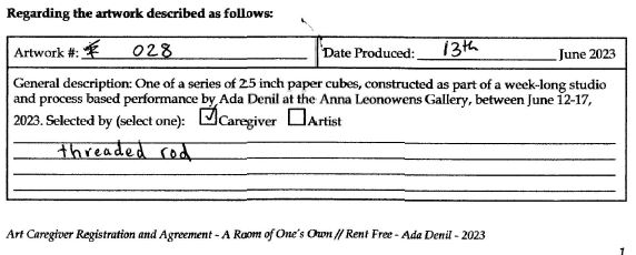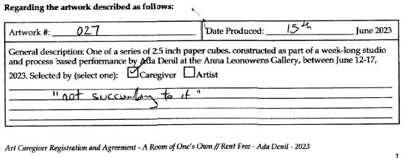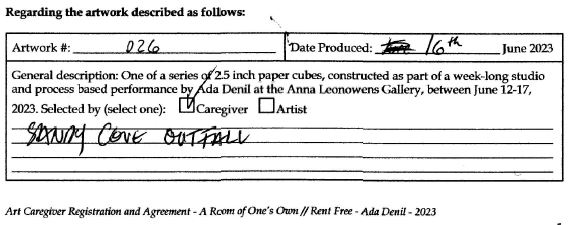 Created during a week-long exhibition of A Room of One’s Own // Rent Free at the Anna Leonowens Gallery in Halifax, NS.