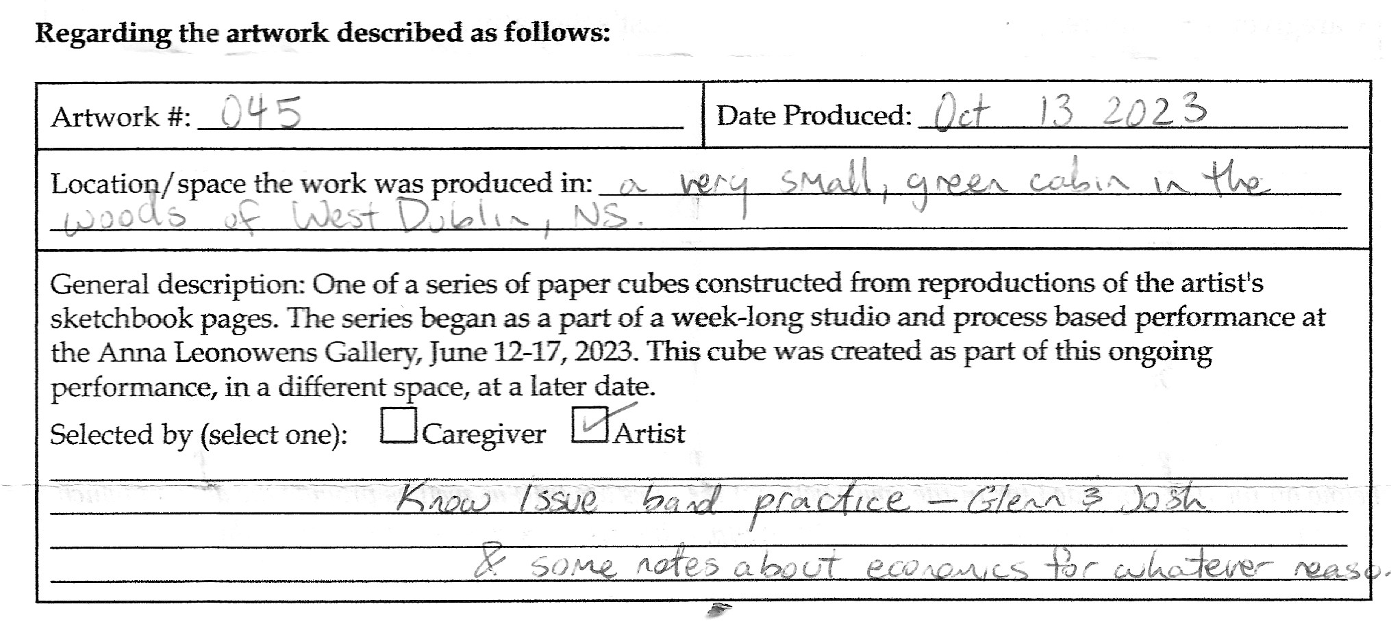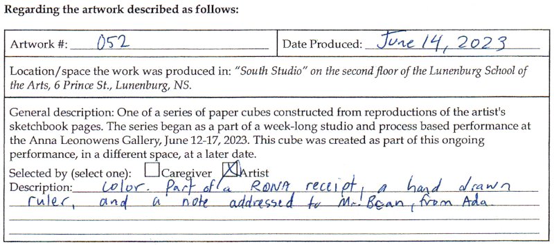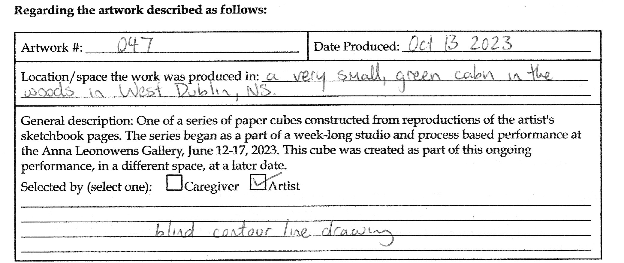 Created in West Dublin, Nova Scotia, and later scanned in LaHave, Nova Scotia, during the Fall of 2023 following the exhibition A Room of One’s Own // Rent Free
