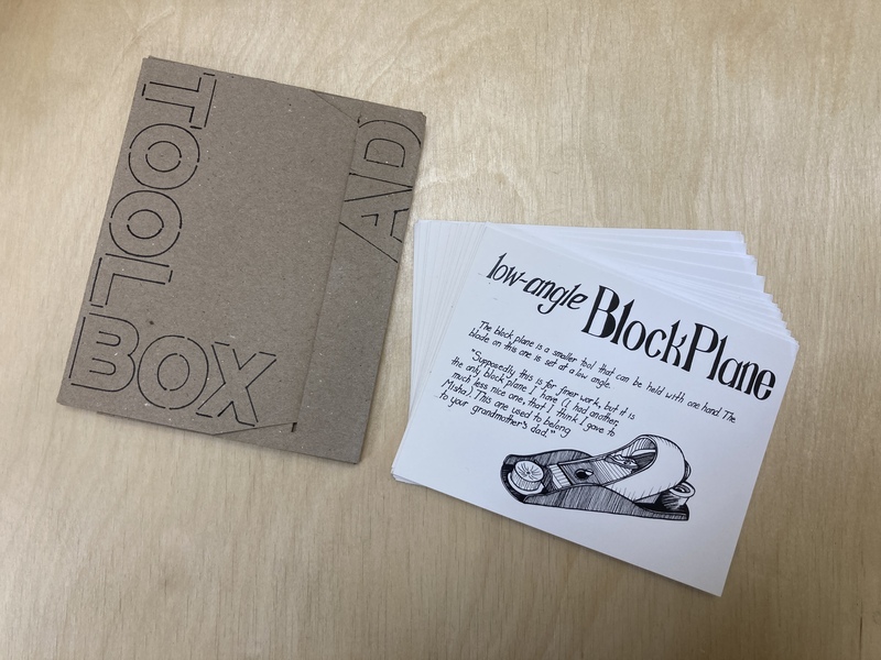 Collection of 16 drawn “Tool Archive” cards – based on a sample of tools owned, used, kept and described by Mark Denil – drawn between 2019 and 2020 and meant to document, preserve, and illustrate a personal exploration of history, and act as both a practical guide and a work of art in itself.